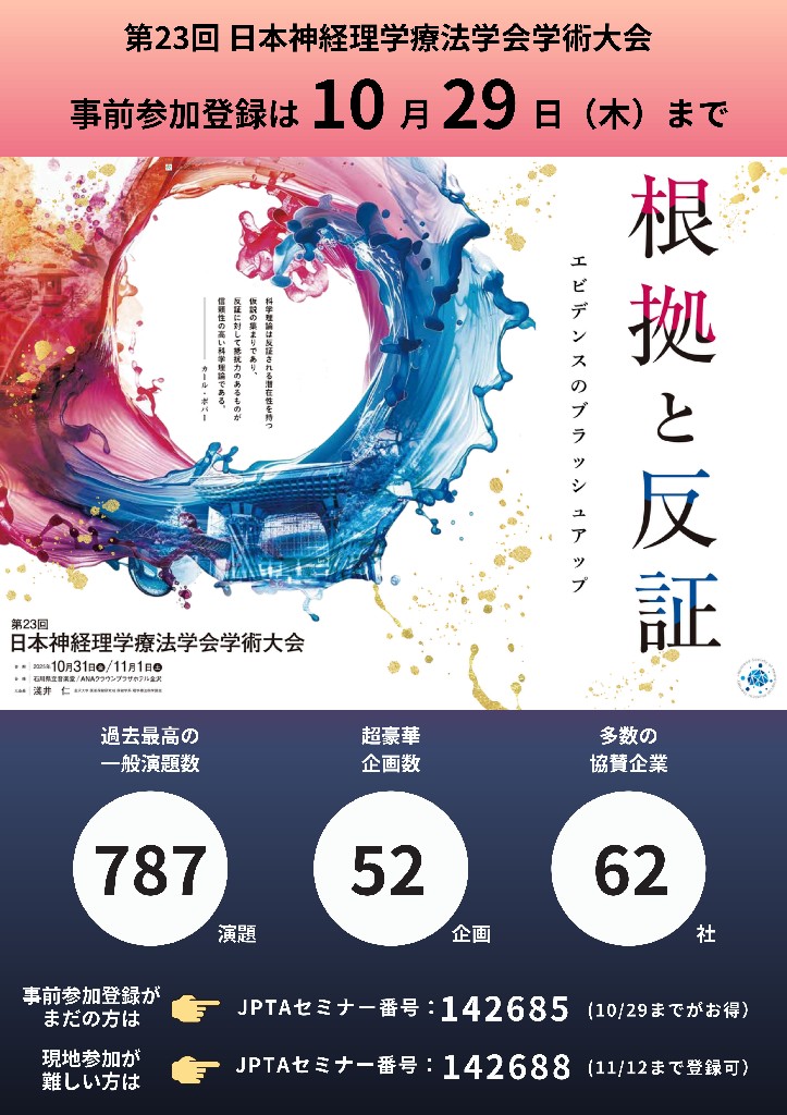 ▶第23回日本神経理学療法学会学術大会の 一般演題プログラム が公開されました!