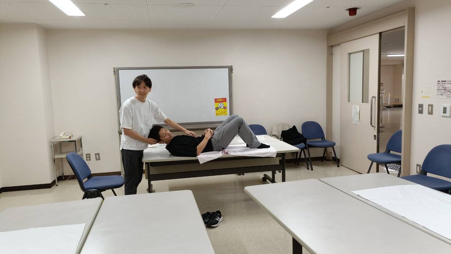 内容は「自立支援型の起き上がり介助方法」ということで、公立みつぎ総合病院の野木宏佑 先生に実技中心で講義をして頂きました。