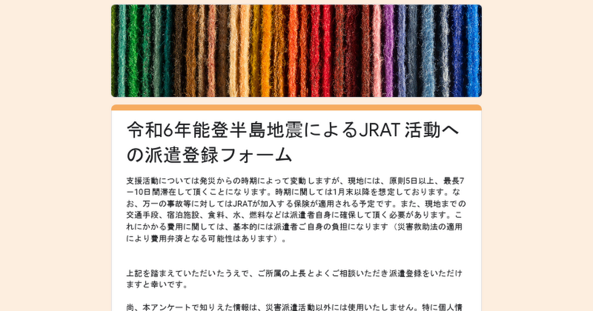 【令和6年能登半島地震によるJRAT 活動への派遣登録フォーム】